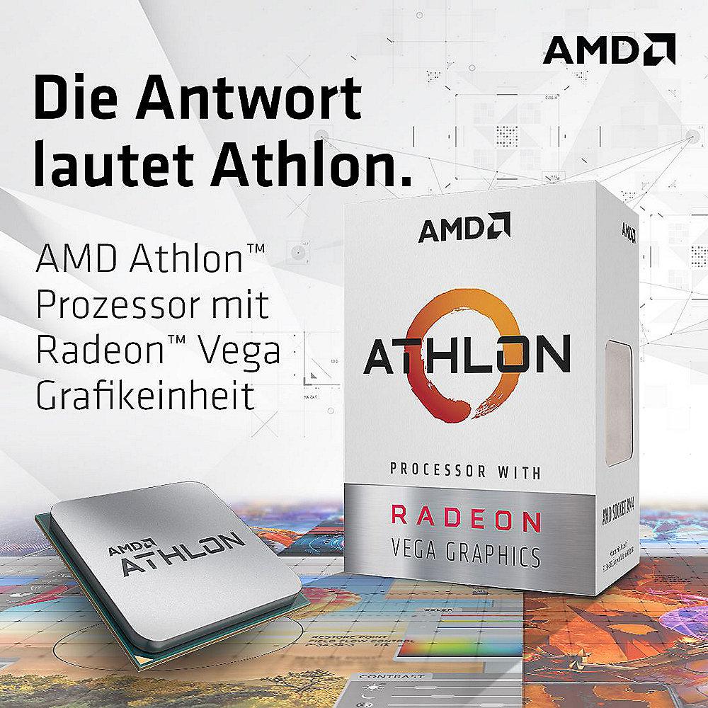 AMDs preisgekröntes Processing und Radeon™ Grafiktechnologie werden von der Bestseller-Konsole bis zum hochmodernen Flugzeug weltweit eingesetzt. Der neue AMD Athlon™ Prozessor verbindet „Zen“ Architektur mit Radeon™ Vega Grafikinnovationen zu einem sagenhaften Chip, der passgenau auf Benutzer von Alltags-PCs zugeschnitten ist.