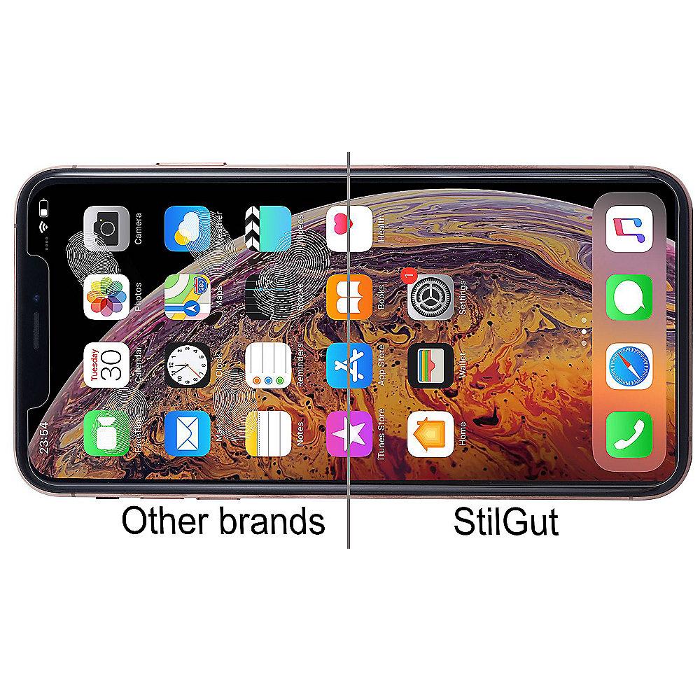 Das transparente StilGut Panzerglas für das iPhone XS schützt das 5.8“ Super Retina HD Display sicher vor Kratzern und ist dennoch kaum sichtbar. Hergestellt aus temperiertem Glas ist das 9H Panzerglas extrem widerstandsfähig und kratzfest.
