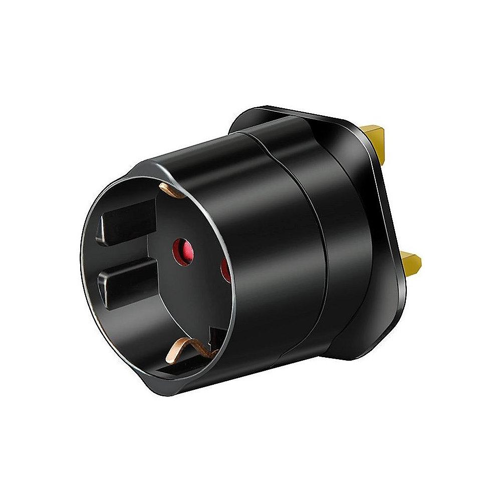 Reisestecker mit Schutzkontakt GB Eigenschaften: Adapter zum Anschluss elektrischer Geräte mit Schutzkontakt Stecksystem in Länder mit Britischem Stecksystem. Der Steckadapter ist kein Spannungs- und Frequenzwandler. Zusätzliche 13 A-Sicherung. Steckdose mit Kinderschutz. Max. Belastung: 13 A/250 V ...
